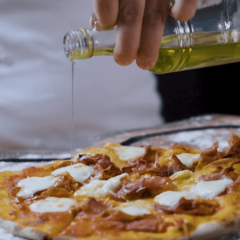 Leve ao forno por 20 minutos a 300 graus e pronto: uma pizza deliciosa saindo quentinha e pronta para ser saboreada.